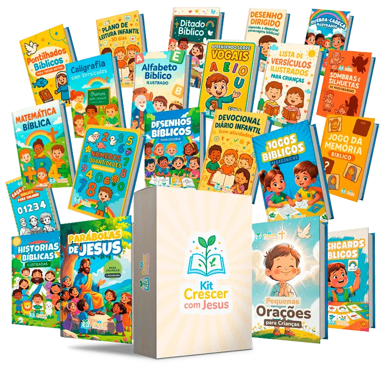 Foi exatamente por isso que criamos o Kit Crescer com Jesus: Um verdadeiro tesouro de materiais ilustrados, lúdicos e espirituais, prontos para imprimir e aplicar com crianças de todas as idades!